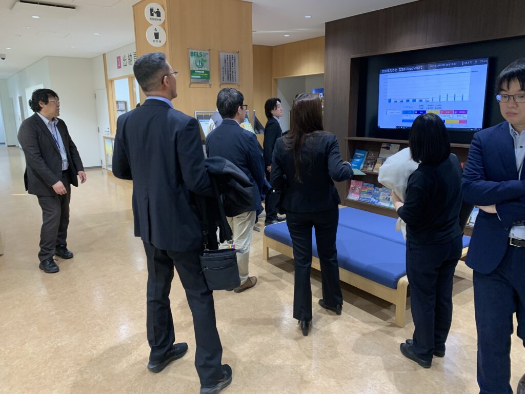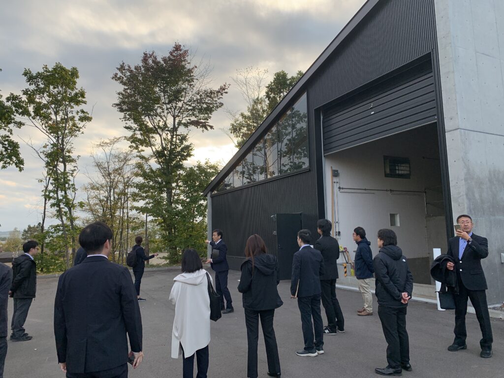 「熱源ネットワークシステム」と「自営線ネットワーク」からなるスマート街区の構築する大樹町を訪問しました。スマート街区を構成する役場庁舎のZEB 化についてお話を伺うほか、自営線ネットワークや町の森林資源である木質バイオマエネルギーを活用した熱供給等についてご紹介いただきました。